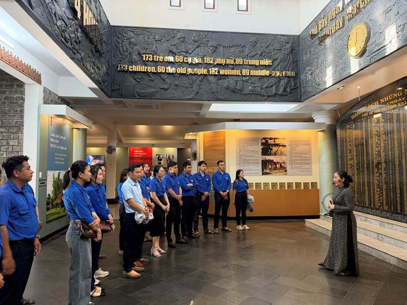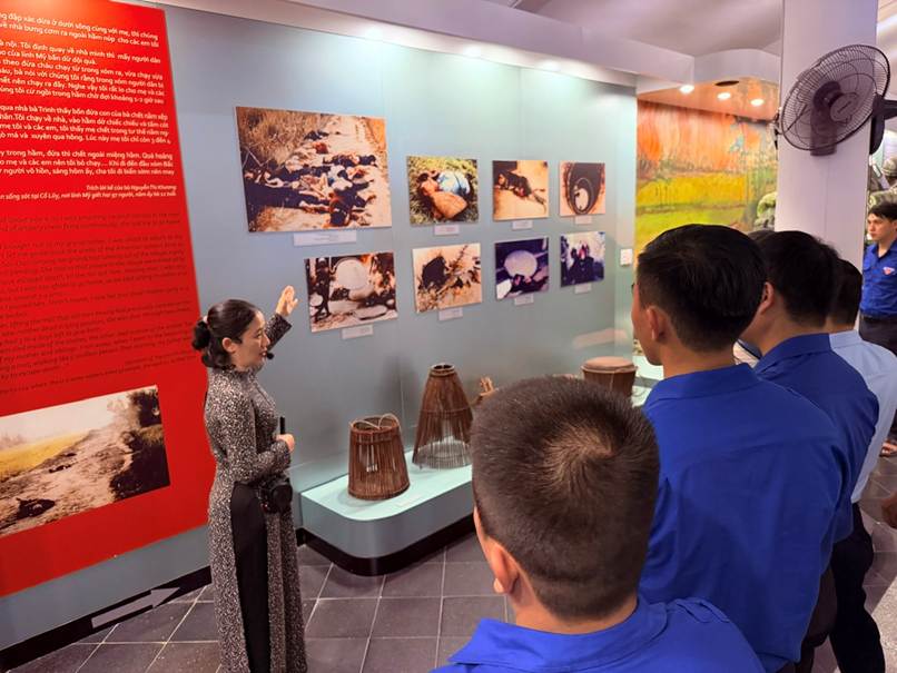 Các đoàn viên lắng nghe câu chuyện thảm sát diễn ra ngày 16/3/1968