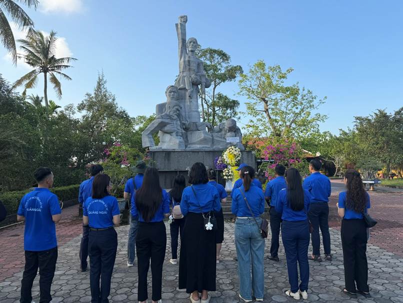 Sau khi thắp hương tại Đền thờ Trương Định, Đoàn Thanh niên Công ty CP Môi trường Đô thị Quảng Ngãi có mặt tại Khu chứng tích Sơn Mỹ. Tại đây, các đoàn viên tôn kính thắp những nén hương, dành phút mặc niệm tưởng nhớ những người đã mất. Các đoàn viên được nghe lại câu chuyện ngày 16/3/1968 tại thôn Mỹ Lai, thuộc xã Sơn Mỹ, huyện Sơn Tịnh, tỉnh Quảng Ngãi (nay là xã Tịnh Khê, thành phố Quảng Ngãi). Chính trên mảnh đất này, các đơn vị lính Lục quân Hoa Kỳ đã thảm sát hàng loạt người dân vô tội, cướp đi sinh mạng của 504 thường dân, trong đó phần lớn là người già, phụ nữ và trẻ em.