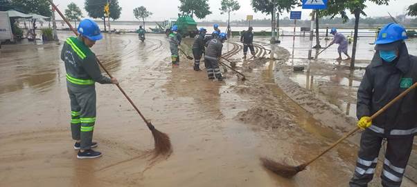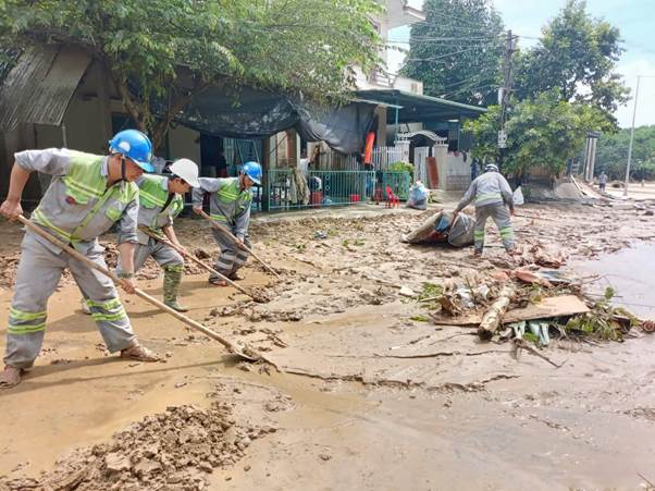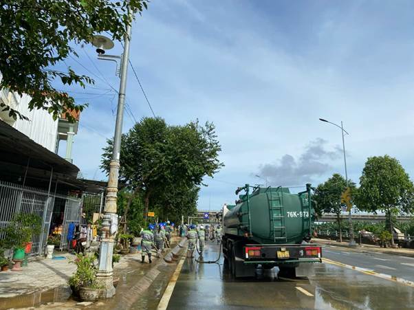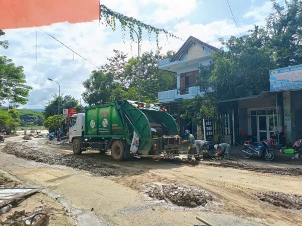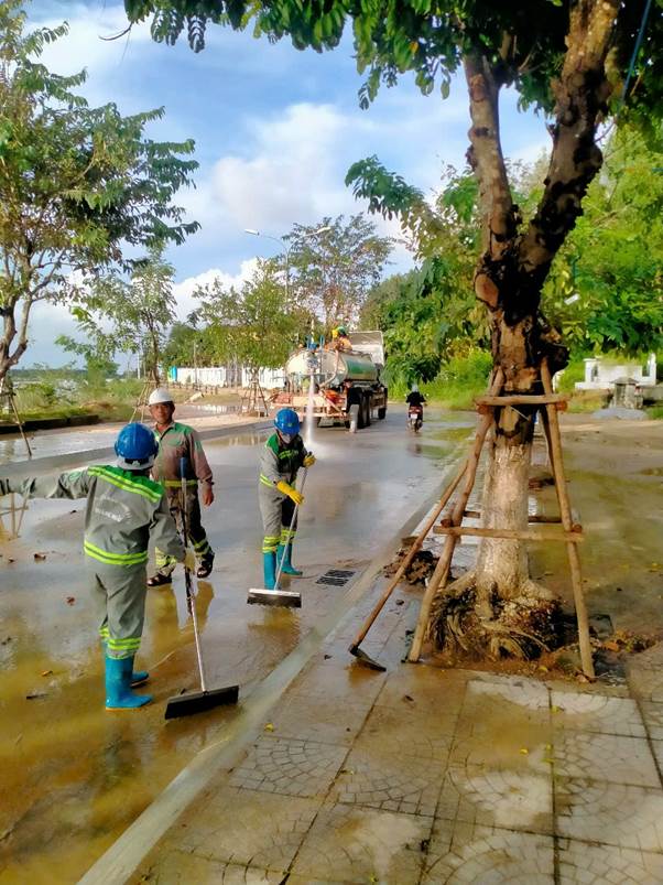 Ngày 30/10/2025, ngay sau khi nước rút, mưa đã giảm dần, được sự chỉ đạo của Ban Lãnh đạo Công ty, hơn 100 công nhân được điều động, tập trung để dọn dẹp các địa bàn trong toàn tỉnh Quảng Ngãi. Tại địa bàn phường Trương Quang Trọng, Công ty huy động 60 lao động, 06 xe bồn nước 14m3, 01 xe xúc lật, 2 xe chở bùn, 01 xe ép chuyên dùng dọn bùn non tại các tuyến Trần Văn Trà, bờ kè đường Hoàng Sa. Chi nhánh Công ty Môi trường Đô thị phía Nam Quảng Ngãi và Chi nhánh Công ty Môi trường Đô thị Phía Bắc Quảng Ngãi đã sớm hoàn thành nhiệm vụ, giúp người dân đi lại thuận tiện.
