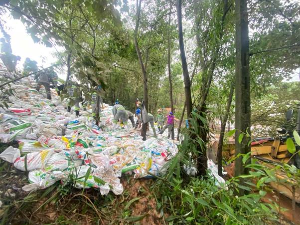Người lao động Công ty vận chuyển bao tải cát tại Công viên Ba Tơ
